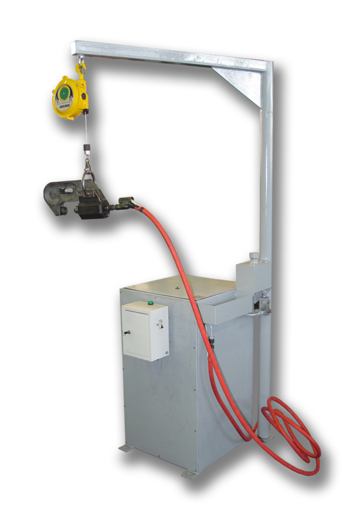 Корпус установлен на неприводную тележку колеёй 1520 мм. Скоба клепатор соединена с пневмогидравлическим усилителем рукавом высокого давления, помещенным в износоустойчивую оболочку.